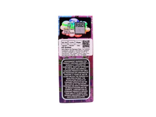 RS Skittlez is known for its sweet, fruity flavor with a candy-like aroma. The live resin extraction preserves terpenes, ensuring that each hit delivers a robust taste experience reminiscent of the original Skittlez strain.